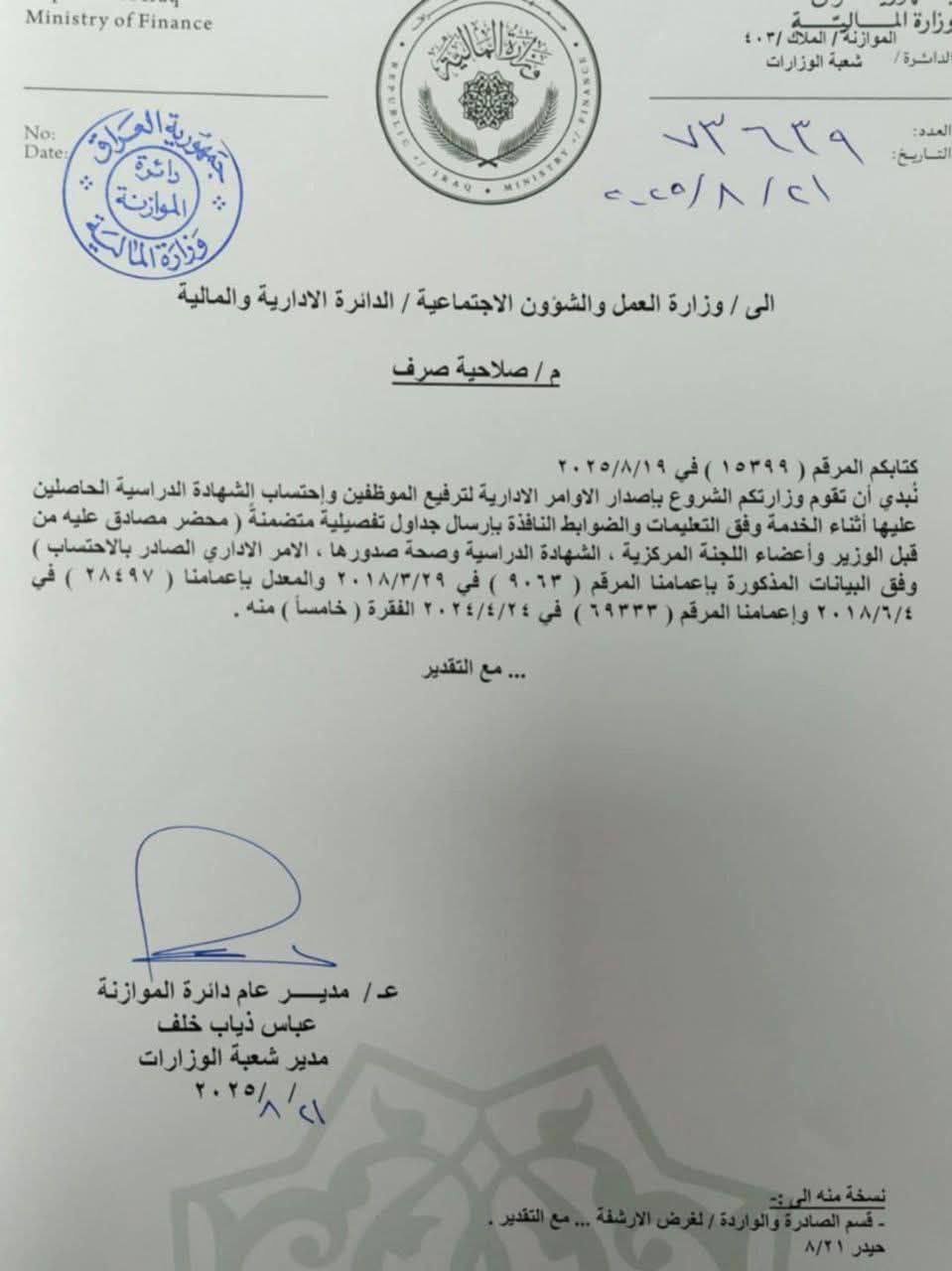 اطلاق العلاوات والترفيعات لموظفي وزارة العمل والشؤون الاجتماعية