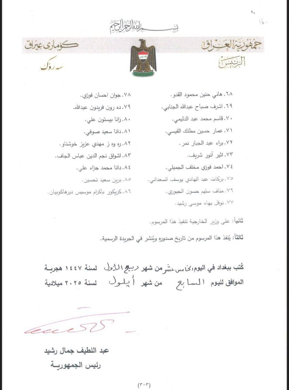 قائمة السفراء المصادق عليهم من قبل رئيس الجمهورية والبالغ عددهم 86 سفيراً